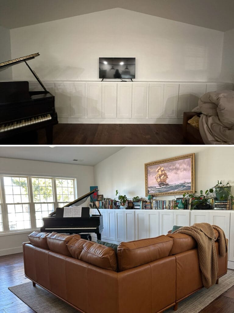 Days after closing on our new home, Tyson quickly built cabinets as necessary storage in our compact home and place holders until we were ready to move forward with our vision.