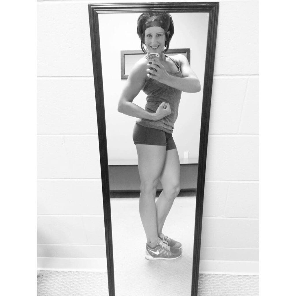 “Celebrating a good gym day with a #flexfriday! I’m deadlifting 205lbs consistently now and did five pull ups, which is five more than I could do when I started lifting in November! Time to set new goals!!! #fitfam #momswithmuscle #girlsthatlift #momsactinglikemeatheads #momofthree #momswholift”