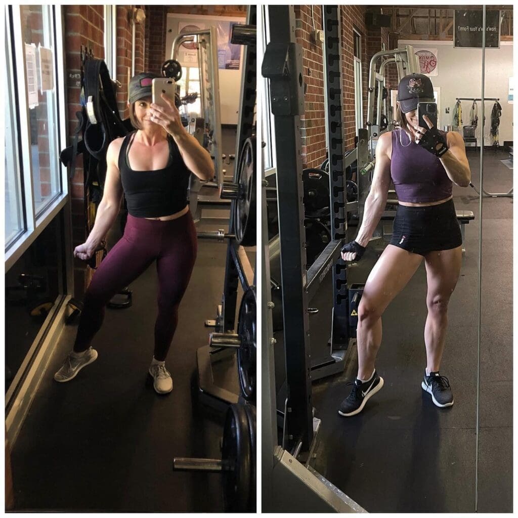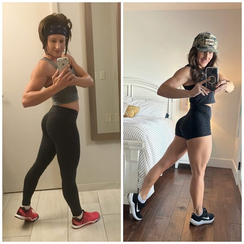 If you’re curious what I am doing to focus on my glutes, here’s another blurb from an Instagram post where I talk about that… But first, here’s a little comparison so you can see where my glutes started: